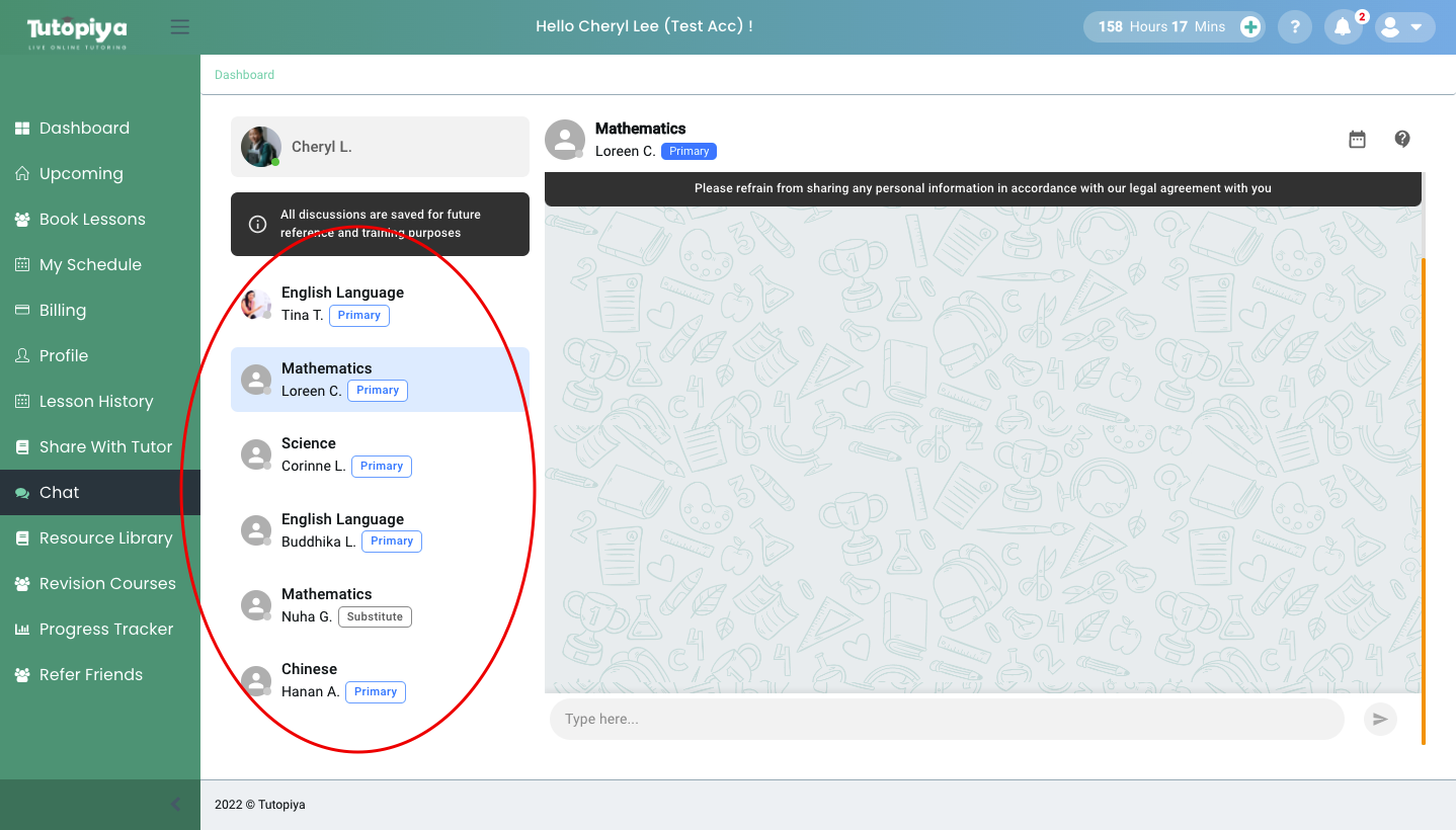 Chat option will help you to communicate with your tutor easily and to clear your lesson doubts - Click on the Tutor’s name you want to chat