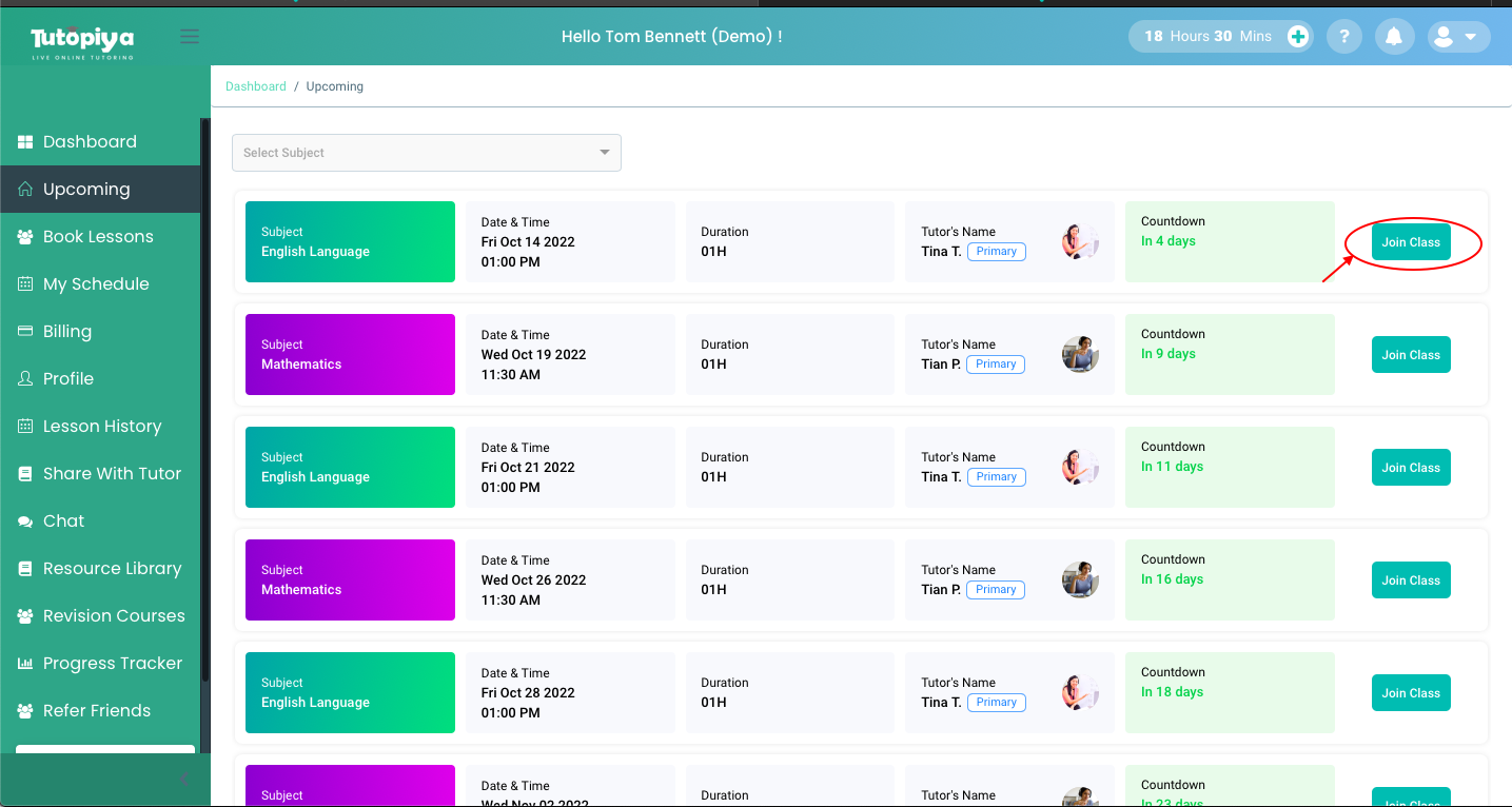 Please follow the steps below to Join a Class through the Platform.
