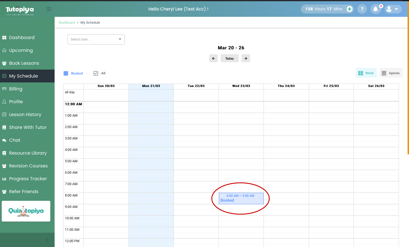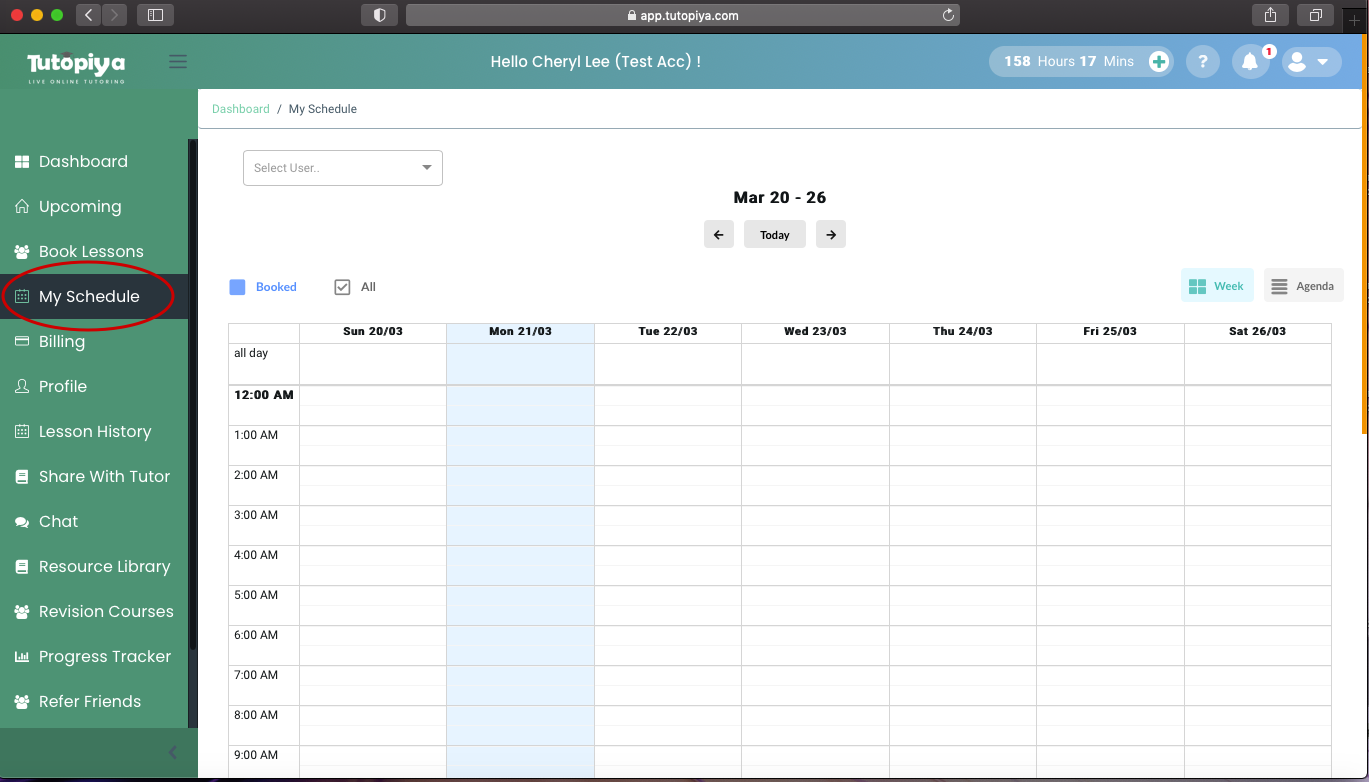 Login to your Tutopiya account, and click on My Schedule on the left side of your screen.