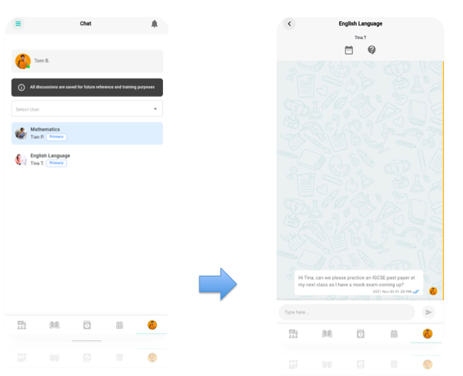 Chat option will help you to communicate with your tutor easily and to clear your lesson doubts -