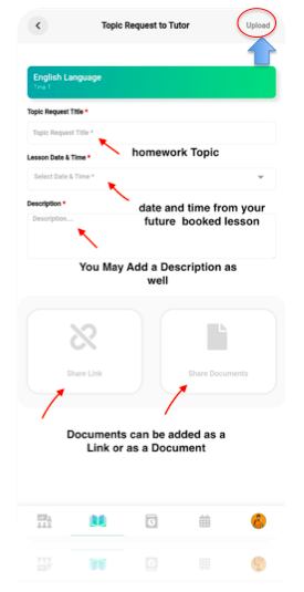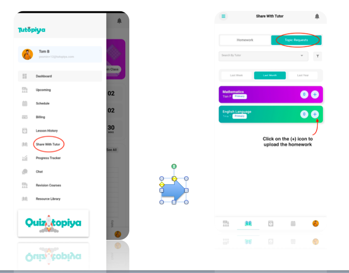 Click on the Share with Tutor tab, and click on the subject which you want to upload or download homework for